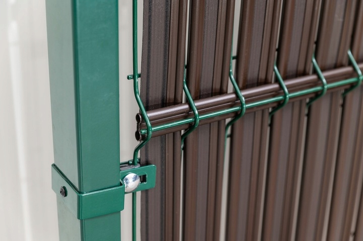 Listwy ogrodzeniowe pionowe do paneli ogrodzeniowych płotu 153x250cm RD01 brązowe szerokie.